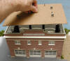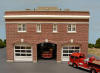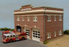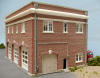 Firehouse, Station 3 - 1/64 scale Kit Currently out of stock. For older trucks and stations without ladder trucks. Perfect for those great CODE 3 Fire Trucks. The footprint is 11 inches wide by 7-1/4 deep, by 7-3/4 high to the top of the front trim. Inside depth is 6-3/4 inches. The main doors can be opened and closed. The doors are sized to clear the apparatus on most of the newer trucks. Door clearance is 2-1/2 to 2-9/16 inches tall with the door relaxed in the open position. All windows and people doors are separate plastic moldings with .010 thick clear styrene glazing. No solid windows. Very easy to assemble. Included in this kit, roof vent turbines, heat vent, electric meters, rain drains, bottle of grout for brickwork and full color painting and assembly instructions. Click here to see how easy it is to build this kit. Fire apparatus not included. To recommended glue for this kit. Click this link to see our new smaller firehouses. Firehouse, Station 3 Kit #603, Price $99. Click on images for large photos. Use your browser back-up button to return. Shown with CODE 3 apparatus for proportional reference only.