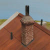 The chimney is cast flat at the bottom so it can be placed at the center or on the side as shown in the photos. The roof is removable.