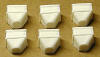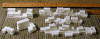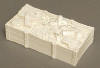 white castings size 3-3/4 x 1-9/16 x 1-1/8 inches tall. Shown on